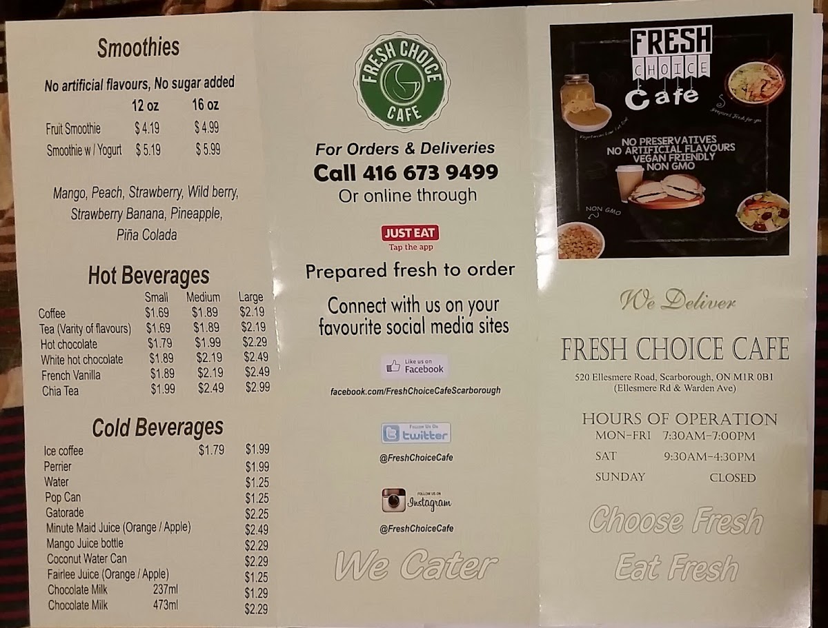 Welcome to Fresh Choice Cafe, a hidden gem located conveniently at 520 Ellesmere Rd in Scarborough, Ontario. This delightful cafe is the perfect spot to unwind and enjoy delicious food crafted with care. The cafe’s ambiance is warm and inviting, where the aroma of freshly brewed coffee and homemade meals welcomes you at the door. You’ll immediately notice the friendly smiles of the staff, making every visit feel like a homecoming.