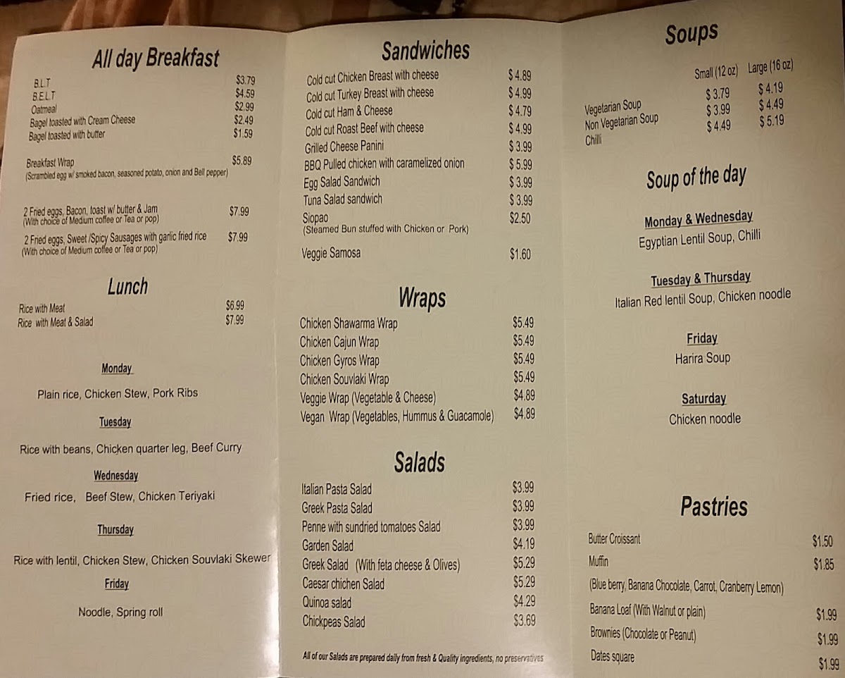 Fresh Choice Cafe prides itself on a diverse menu that is thoughtfully prepared with fresh ingredients. Start your day with a variety of bagels, including the B.e.l.t (bacon, egg, lettuce, and tomato), or indulge in the classic Bagel with Cream Cheese. The cafe also offers hearty soups, such as the comforting Lentil Soup and flavorful Chili, available on selected days of the week. As noted by customer Eddie, the quality of the food is remarkable for the price, making it an excellent choice for both lunch and a casual snack.